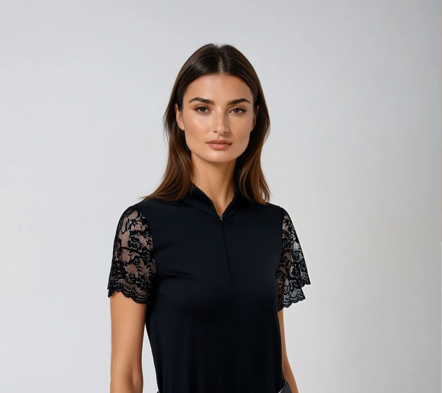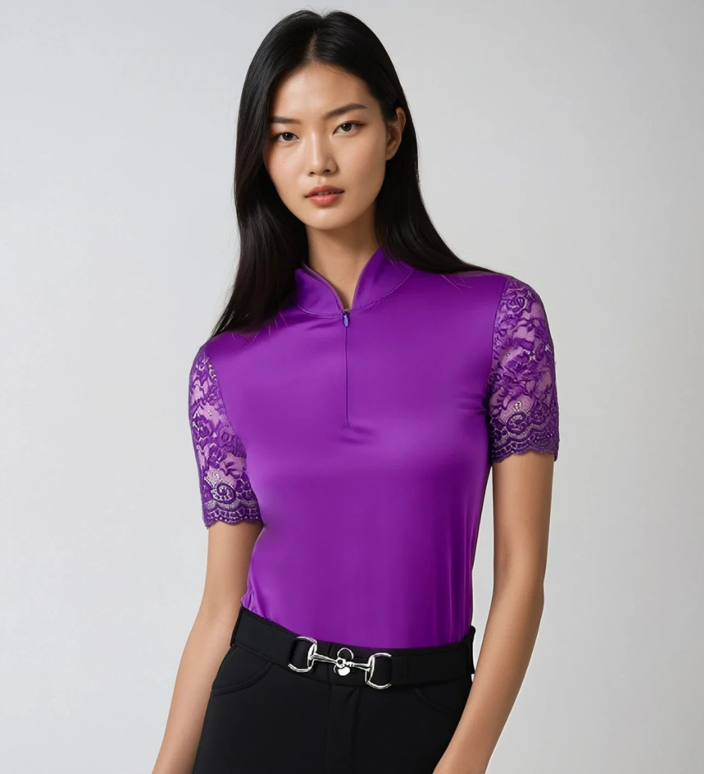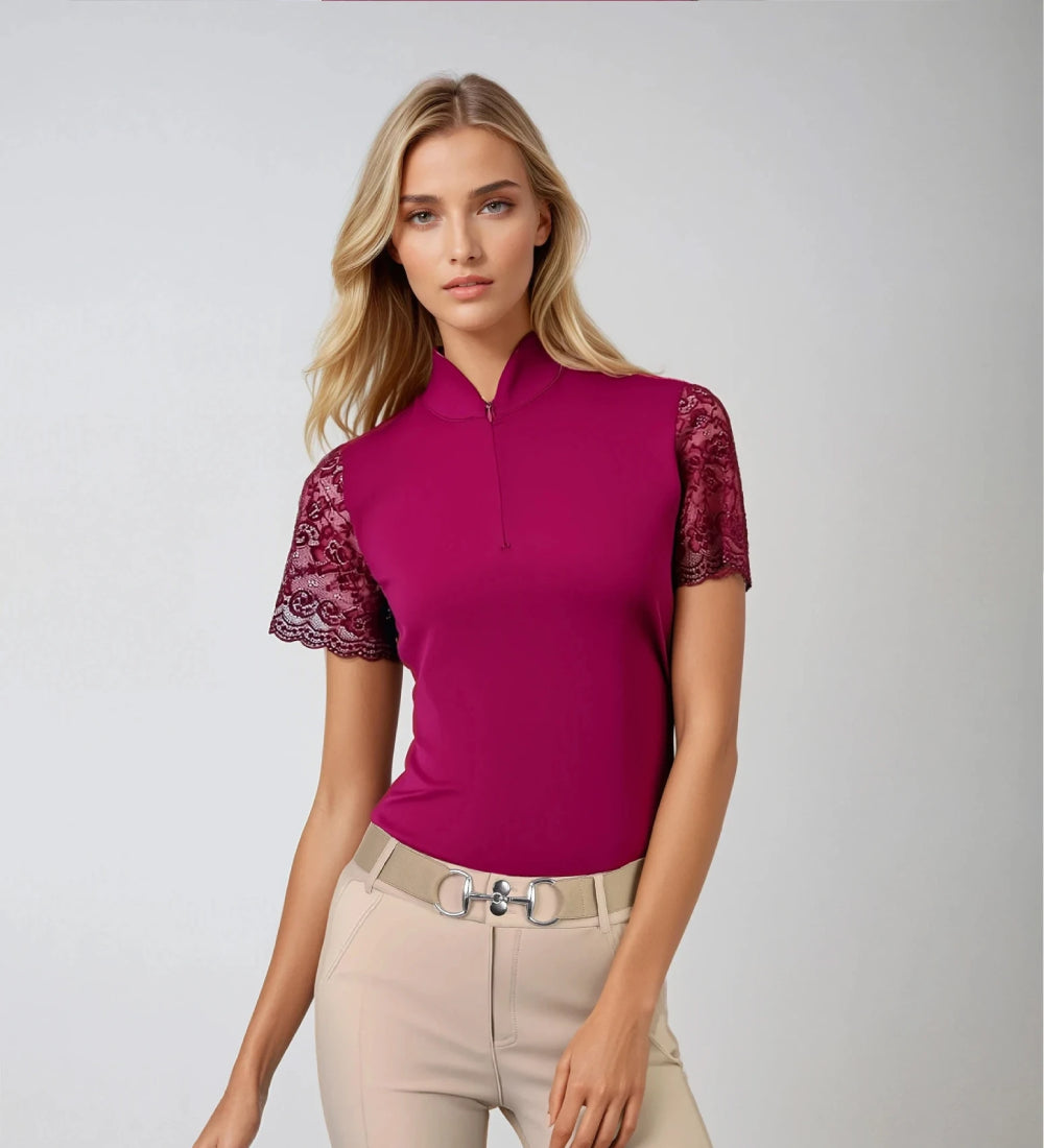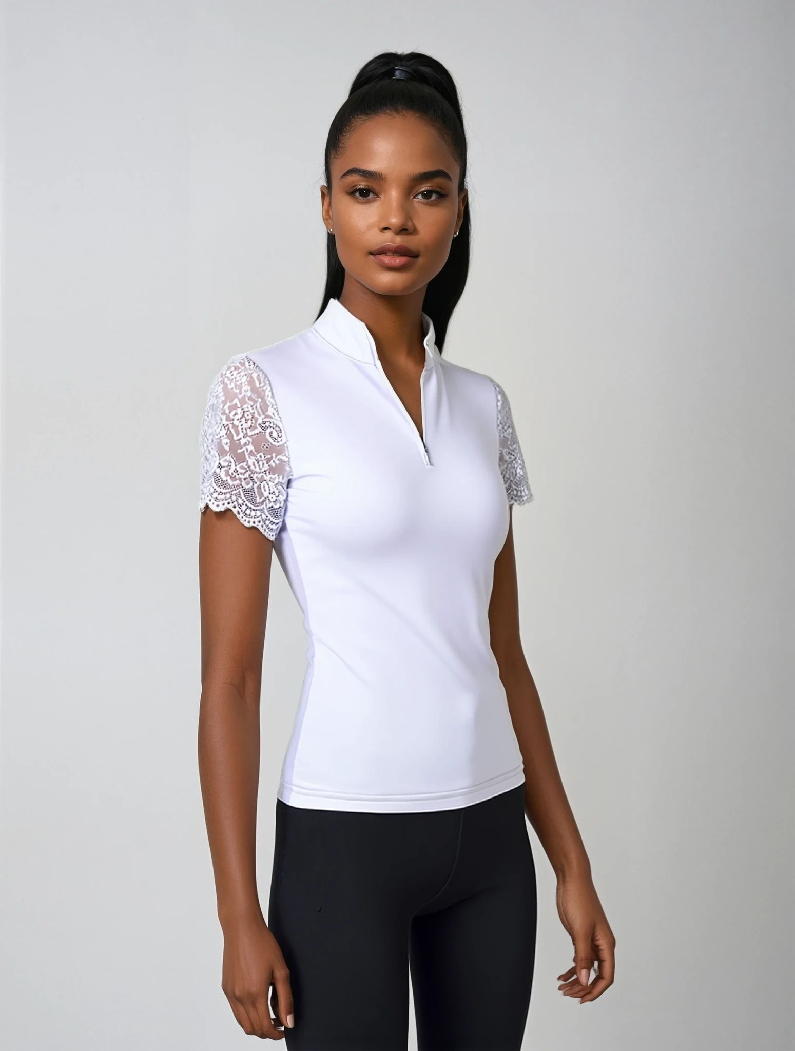 Women's Polo Shirt Short Sleeve with Chic Lace for Horse Riding, Golf, and Casual wear